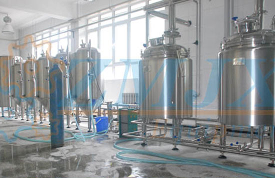 啤(pi)酒(jiu)(jiu)發(fa)酵(jiao)(jiao)系統有(you)發(fa)酵(jiao)(jiao)罐(guan)、清酒(jiu)(jiu)罐(guan)、暫存(cun)罐(guan)組成;發(fa)酵(jiao)(jiao)是啤(pi)酒(jiu)(jiu)生產中極(ji)其(qi)重(zhong)要(yao)的(de)工藝過程(cheng)(cheng)。是一(yi)個有(you)酵(jiao)(jiao)母參與(yu)的(de)復(fu)雜的(de)生化反應過程(cheng)(cheng),發(fa)酵(jiao)(jiao)罐(guan)為錐(zhui)底(di)圓柱形,罐(guan)體(ti)具備自身冷卻(que)裝置,可(ke)很(hen)容易地控制發(fa)酵(jiao)(jiao)溫度;罐(guan)底(di)為錐(zhui)形,回收酵(jiao)(jiao)母及(ji)清洗都很(hen)方便;罐(guan)體(ti)具有(you)CIP清洗系統,保證了生產中的(de)衛(wei)生安全。具備了先進的(de)國際發(fa)酵(jiao)(jiao)工程(cheng)(cheng)技術,可(ke)采用PLC自動控溫技術。全過程(cheng)(cheng)控制啤(pi)酒(jiu)(jiu)發(fa)酵(jiao)(jiao)。
