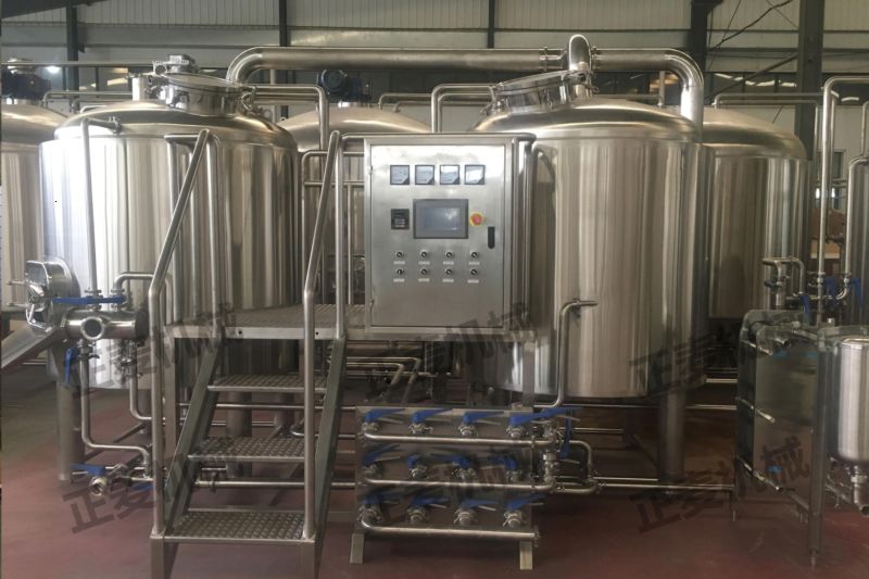 糖化(hua)系(xi)(xi)統(tong)是有糖化(hua)煮沸(fei)鍋、過濾槽(cao)、漩渦(wo)沉淀(dian)槽(cao)及(ji)工(gong)(gong)藝管道組(zu)成;糖化(hua)煮沸(fei)鍋為“蒸(zheng)汽加(jia)熱(re)式(shi);電加(jia)熱(re)式(shi);燃氣加(jia)熱(re)式(shi)”組(zu)成。罐體(ti)為雙層(ceng)保溫(wen)方式(shi)“巖棉(mian)或聚氨酯”材料。加(jia)熱(re)面積足夠(gou)(gou)達到(dao)麥汁煮沸(fei)蒸(zheng)發量(liang),能夠(gou)(gou)有效阻止熱(re)能耗(hao)的(de)外(wai)泄。罐體(ti)內部(bu)采(cai)用(yong)國(guo)際標(biao)準不銹(xiu)鋼(gang)精加(jia)工(gong)(gong)而成;外(wai)部(bu)采(cai)用(yong)不銹(xiu)鋼(gang)或紫銅鏡面板組(zu)成,古樸(pu)典雅的(de)外(wai)觀(guan)造型;即釀出美妙佳釀還(huan)有藝術品的(de)象征(zheng)。糖化(hua)煮沸(fei)鍋頂部(bu)加(jia)裝攪拌系(xi)(xi)統(tong)能使醪(lao)液均(jun)勻糖化(hua);過濾槽(cao)頂部(bu)加(jia)裝耕刀系(xi)(xi)統(tong)保證醪(lao)液勻速過濾避免氧(yang)化(hua)。漩渦(wo)沉淀(dian)系(xi)(xi)統(tong);采(cai)用(yong)切線(xian)及(ji)離心(xin)力的(de)作用(yong)能夠(gou)(gou)徹(che)底的(de)分離出多余(yu)的(de)蛋白質及(ji)雜質,達到(dao)成熟(shu)麥汁的(de)純凈度。