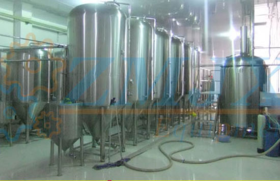 啤酒(jiu)(jiu)發(fa)(fa)酵(jiao)(jiao)系統有(you)發(fa)(fa)酵(jiao)(jiao)罐(guan)(guan)(guan)、清酒(jiu)(jiu)罐(guan)(guan)(guan)、暫(zan)存罐(guan)(guan)(guan)組成;發(fa)(fa)酵(jiao)(jiao)是啤酒(jiu)(jiu)生(sheng)(sheng)(sheng)產中極其重(zhong)要的工(gong)藝過程。是一個有(you)酵(jiao)(jiao)母參(can)與的復雜的生(sheng)(sheng)(sheng)化反應過程,發(fa)(fa)酵(jiao)(jiao)罐(guan)(guan)(guan)為(wei)錐(zhui)(zhui)底圓柱形,罐(guan)(guan)(guan)體(ti)具(ju)(ju)備(bei)自身冷(leng)卻裝置,可(ke)(ke)很(hen)容易地控(kong)制發(fa)(fa)酵(jiao)(jiao)溫(wen)(wen)度;罐(guan)(guan)(guan)底為(wei)錐(zhui)(zhui)形,回收酵(jiao)(jiao)母及清洗都很(hen)方便;罐(guan)(guan)(guan)體(ti)具(ju)(ju)有(you)CIP清洗系統,保證(zheng)了生(sheng)(sheng)(sheng)產中的衛生(sheng)(sheng)(sheng)安全。具(ju)(ju)備(bei)了先進的國際發(fa)(fa)酵(jiao)(jiao)工(gong)程技(ji)術,可(ke)(ke)采用PLC自動控(kong)溫(wen)(wen)技(ji)術。全過程控(kong)制啤酒(jiu)(jiu)發(fa)(fa)酵(jiao)(jiao)。